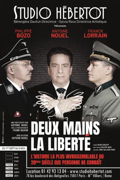 Deux Mains, la Liberté au Studio Hébertot : Antoine Nouel fait revivre Felix Kersten, le médecin d’Himmler, qui a obtenu la libération de plus de 100.000 personnes en contrepartie de ses massages. Un grand bravo à ce travail de mémoire, à la performance des acteurs. A voir. Absolument.
