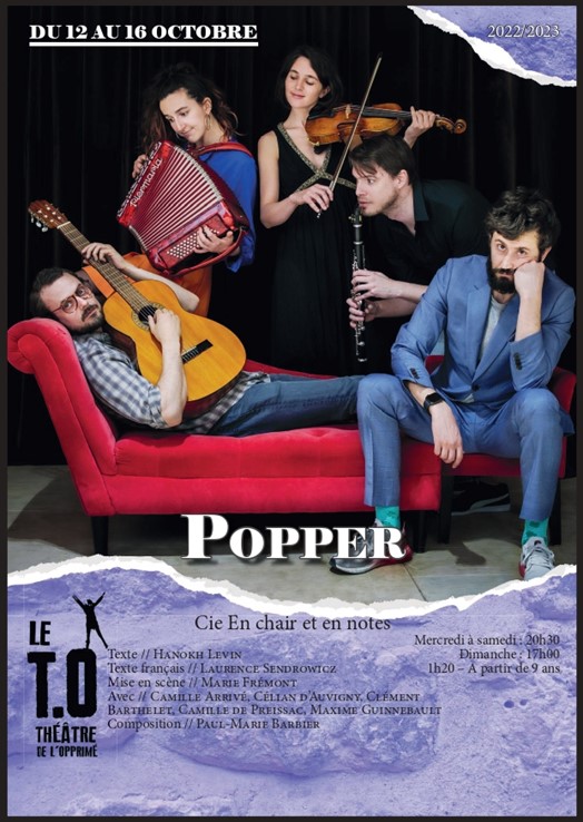 J’allais un peu curieux découvrir Popper, je me suis laissé embarquer dès les premières répliques par la magie du texte et de son interprétation, je suis sorti passionné, séduit et convaincu par ce beau moment de théâtre, un moment rare, un moment complet, qui fonctionne à tous les niveaux. En Chair et en Notes est une jeune compagnie d’acteurs musiciens. Je vous recommande d’aller voir Popper quand la pièce se redonnera, et d’être attentif à leurs prochaines productions.