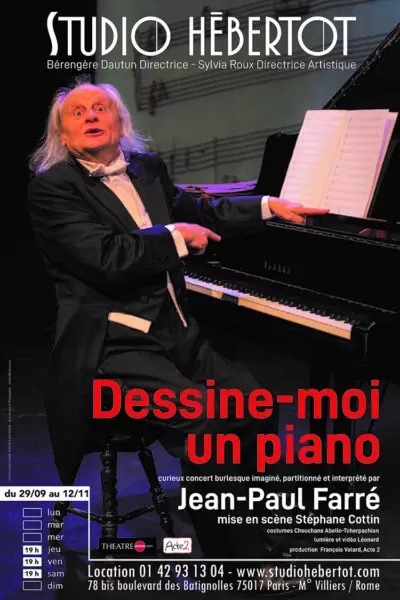 Dessine-moi un piano au Studio Hébertot : un superbe bijou à voir absolument, Jean-Paul Farré joue avec les mots et son piano, son plaisir se transmet au public, enthousiaste de retrouver son âme de bambin émerveillé